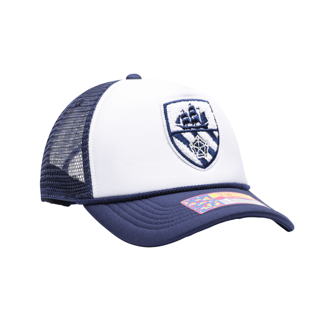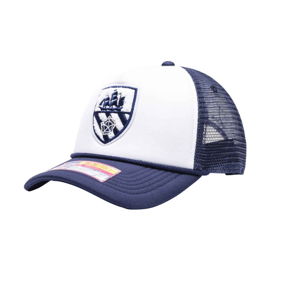 Premium construction; daring execution. The Scout snapback is a subversive take on a classic Trucker silhouette. A padded foam crown makes way for an embroidered chenille club logo patch, as rope detailing on the peak brings an undeniably elevated edge. Made for fans to express their allegiance, the Scout is as much at home in the stadium as on the street.