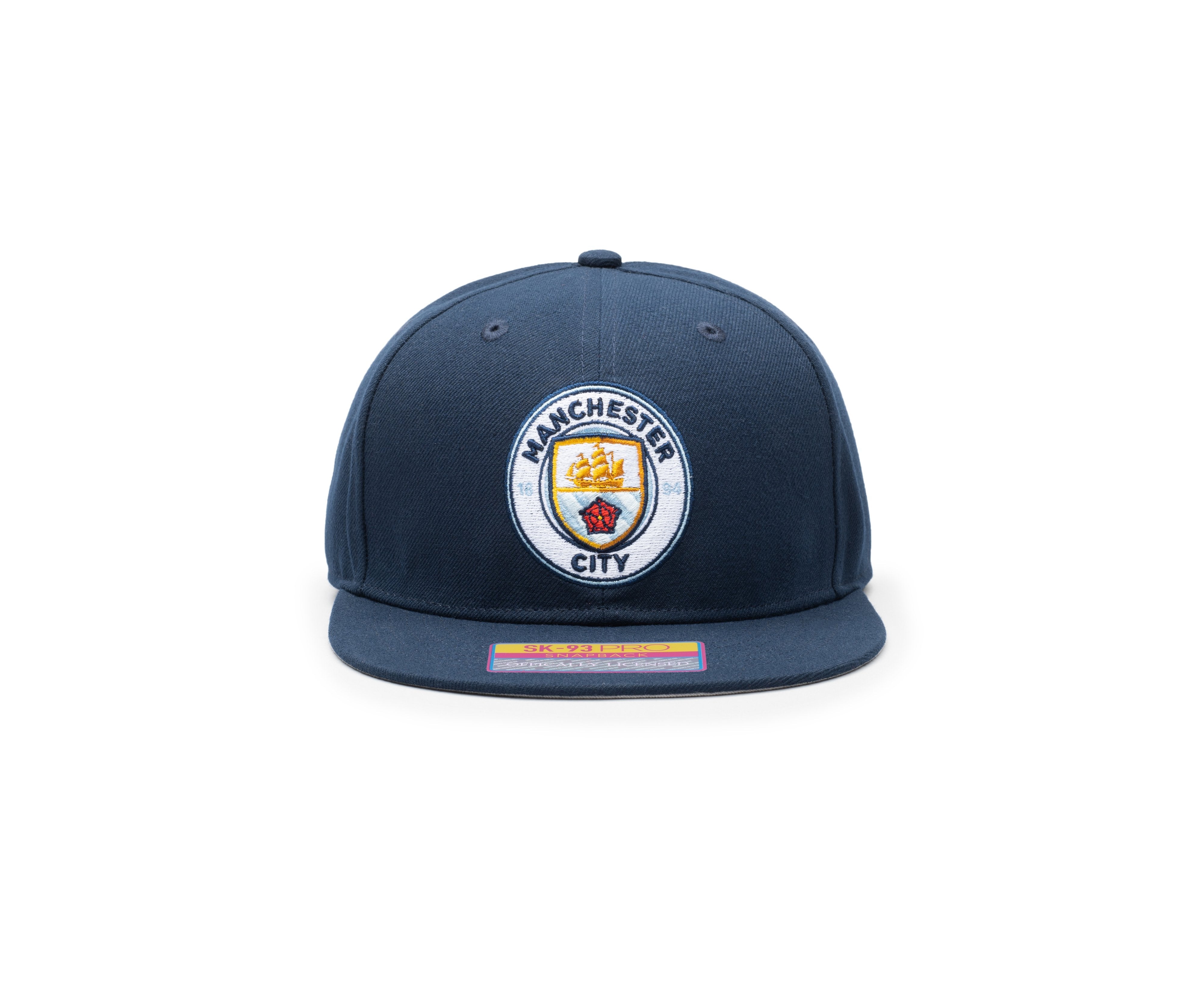 The Manchester City Dawn Snapback hat lets you show your support for this team in style!. The Dawn hat features a front 3D embroidery of the team logo as well as a back embroidery of the year the team was founded. It makes use of team colors for the back embroidery of the year the team was founded to represent your true team spirit! The hat has a high crown and a flat peak that has a contrasting grey underpeak.